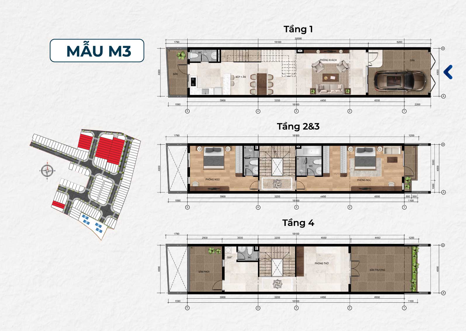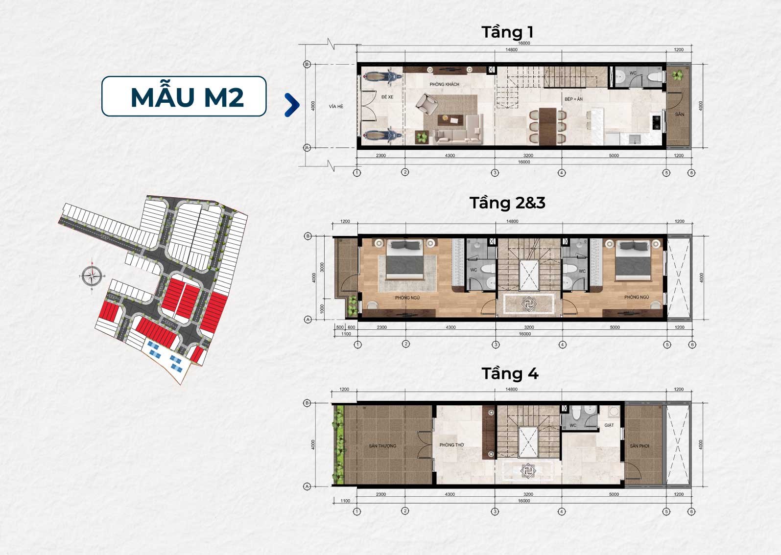 nhà phố 1 trệt – 2 lầu – 1 tum