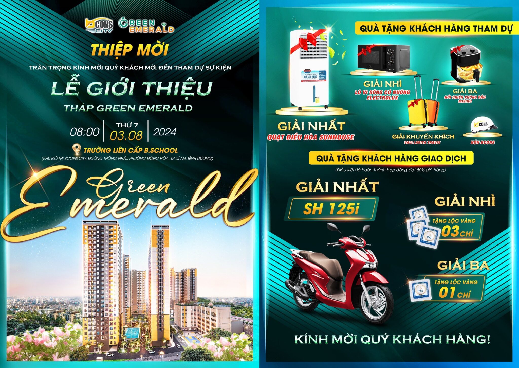 Chào mừng Quý Khách hàng đến tham quan và trải nghiệm về không gian sống tiện nghi và đẳng cấp của Tháp Green Emerald trong quần thể Khu đô thị mới Bcons City – tọa lạc trên con đường Thống Nhất đẹp nhất TP Dĩ An